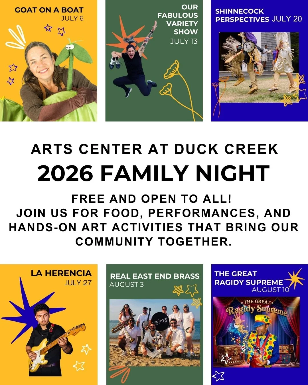 THE ARTS CENTER AT DUCK CREEK is a vibrant, sustainable arts organization dedicated to the stewardship of Historic Duck Creek Farm as a place to inspire our community with creative programming that supports artists, celebrates diversity, and honors the East End’s cultural legacy.
